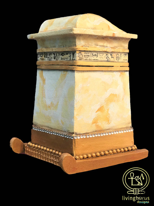 Ancient Egyptian Faux Alabaster Canopic Chest with opening lid - Tutankhamun / King Tut