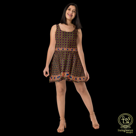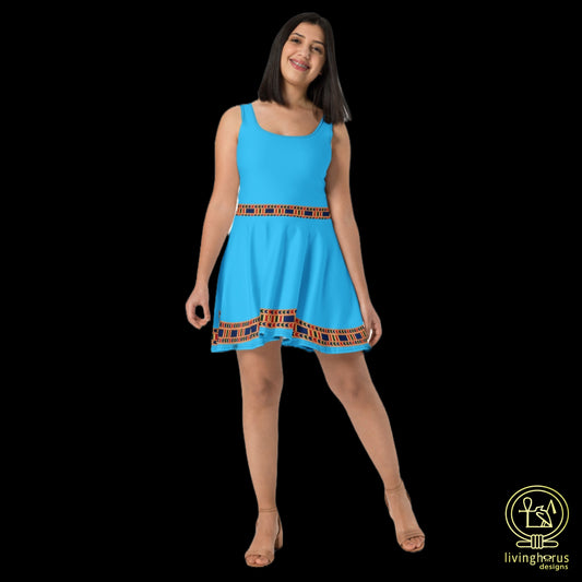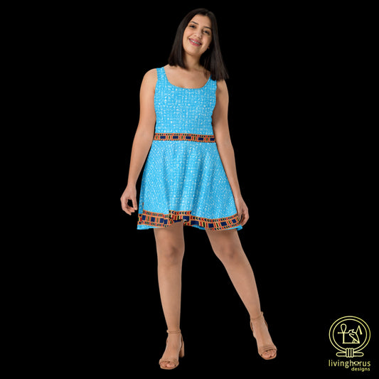 Egyptian Faience Light Blue Hieroglyph Bodycon Dress