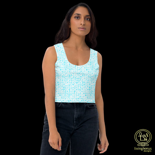 Egyptian Hieroglyphic Crop Top - Light Blue