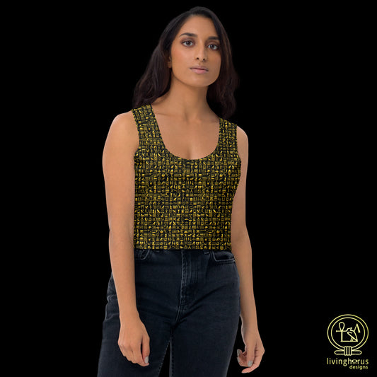 Egyptian Golden Hieroglyph Crop Top - Black