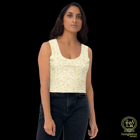 Egyptian Golden Hieroglyph Crop Top - White