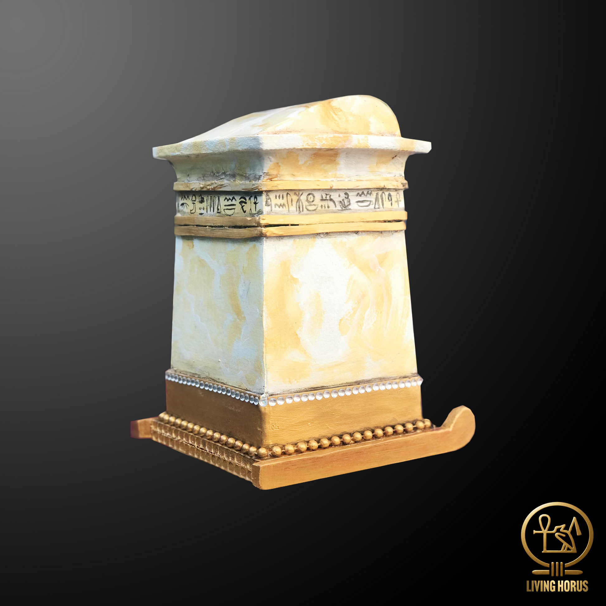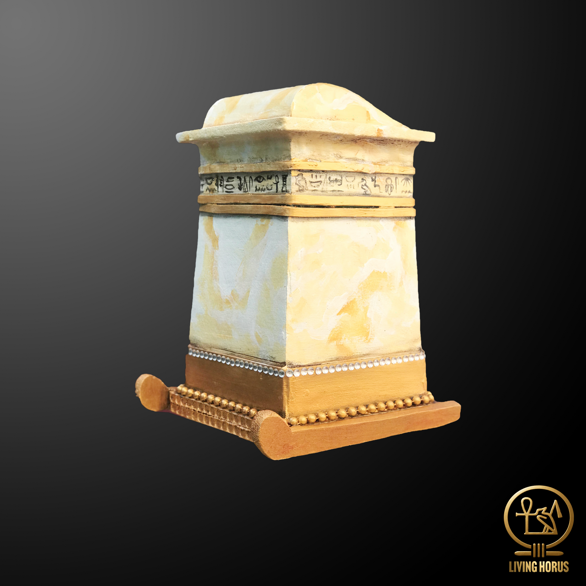 Based on the Canopic Shrine made from Alabaster found in King Tutankhamun's tomb in 1922.
