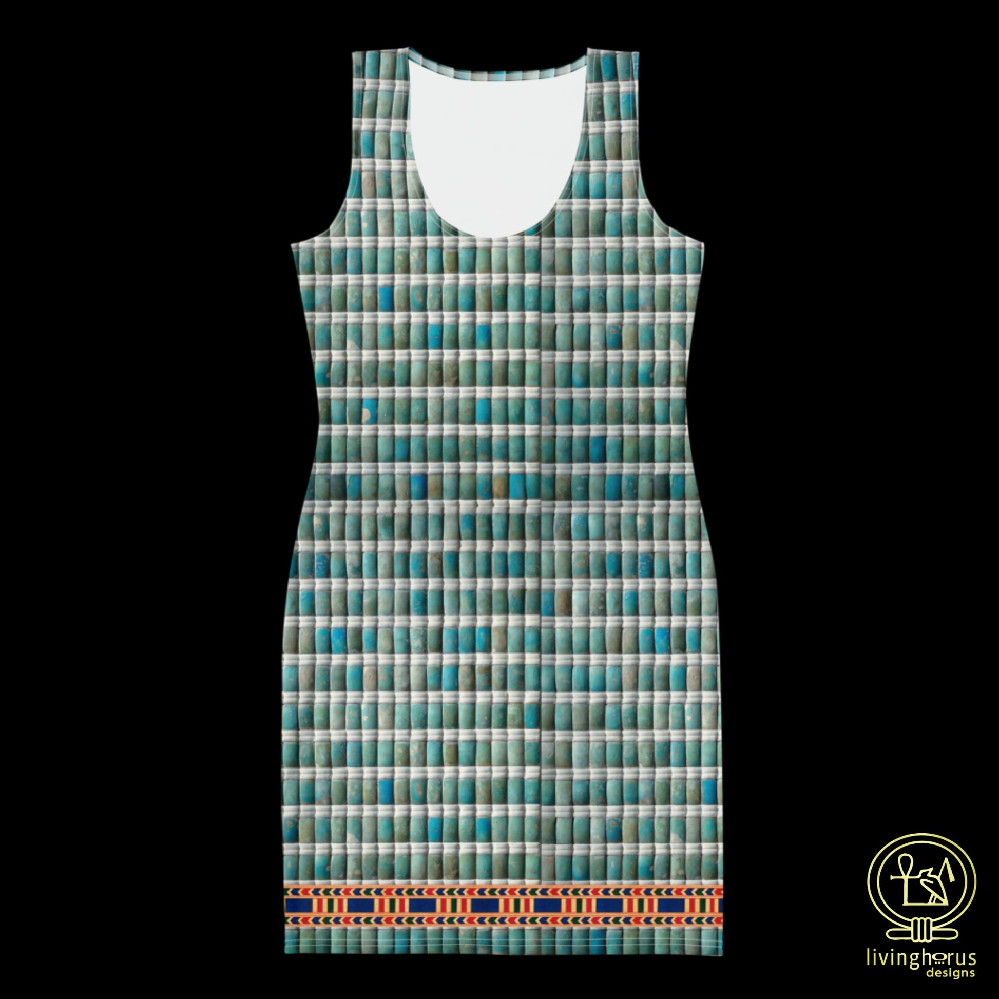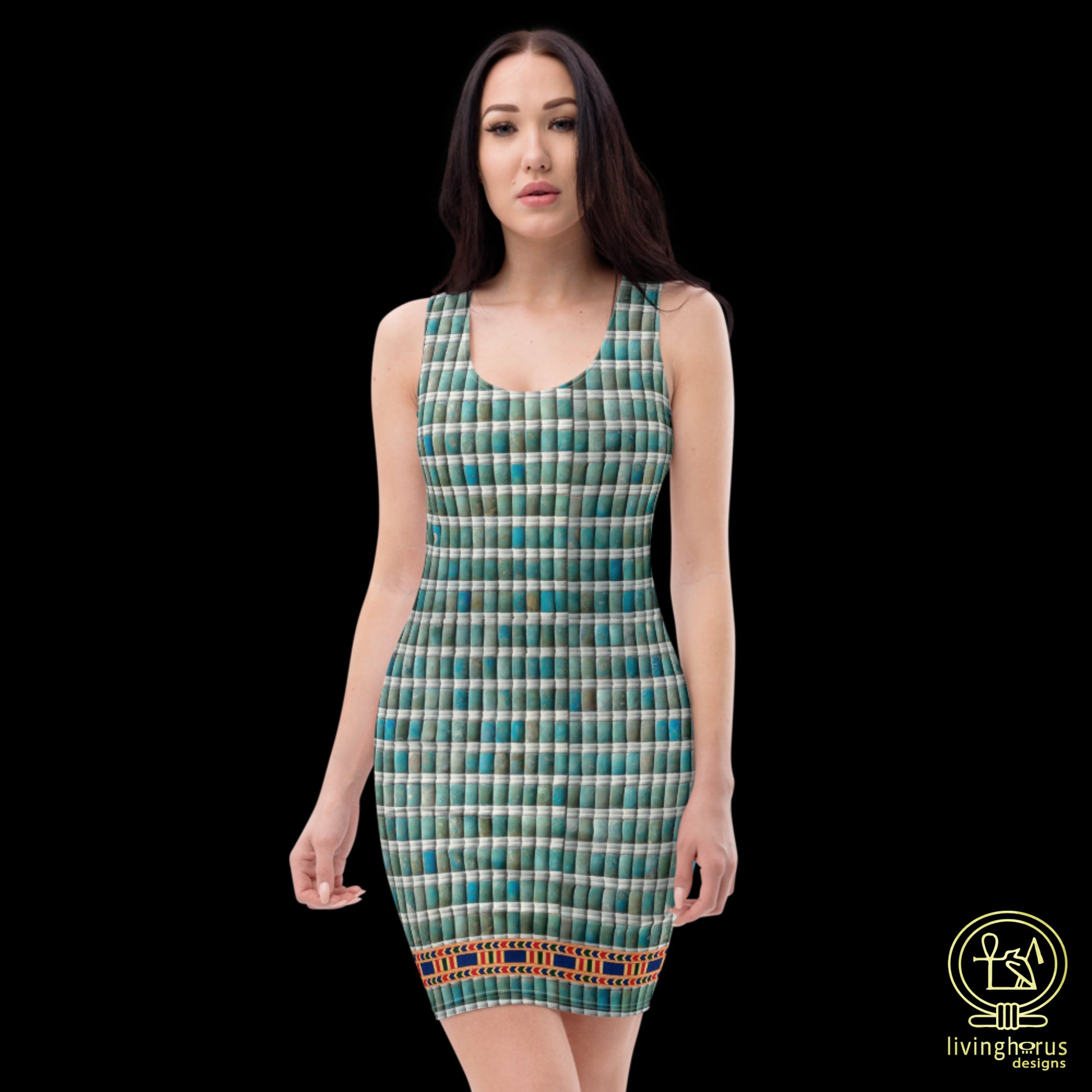 Inspired by the exquisite faience tiles that adorn the funerary complex of the Third Dynasty Egyptian Pharaoh Djoser, this slim fitting bodycon dress will definitely provide the WOW-Factor at your next public engagement!