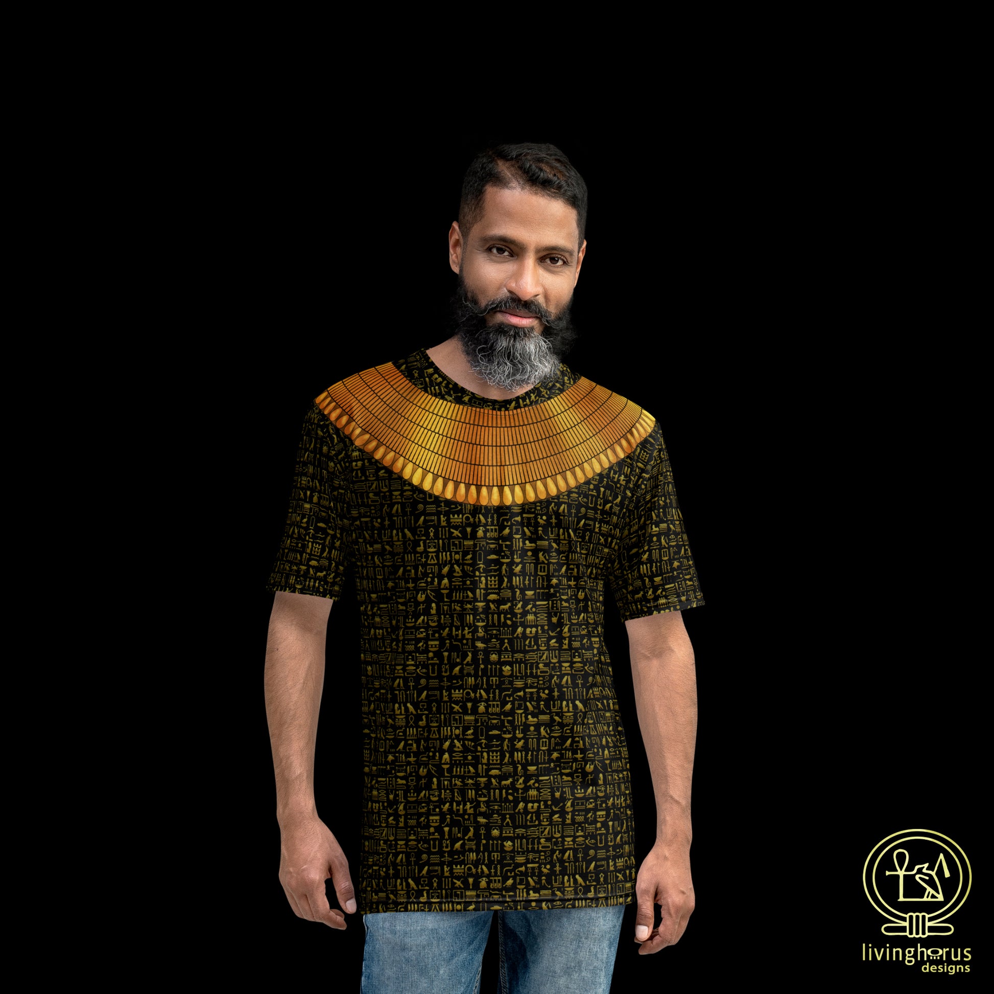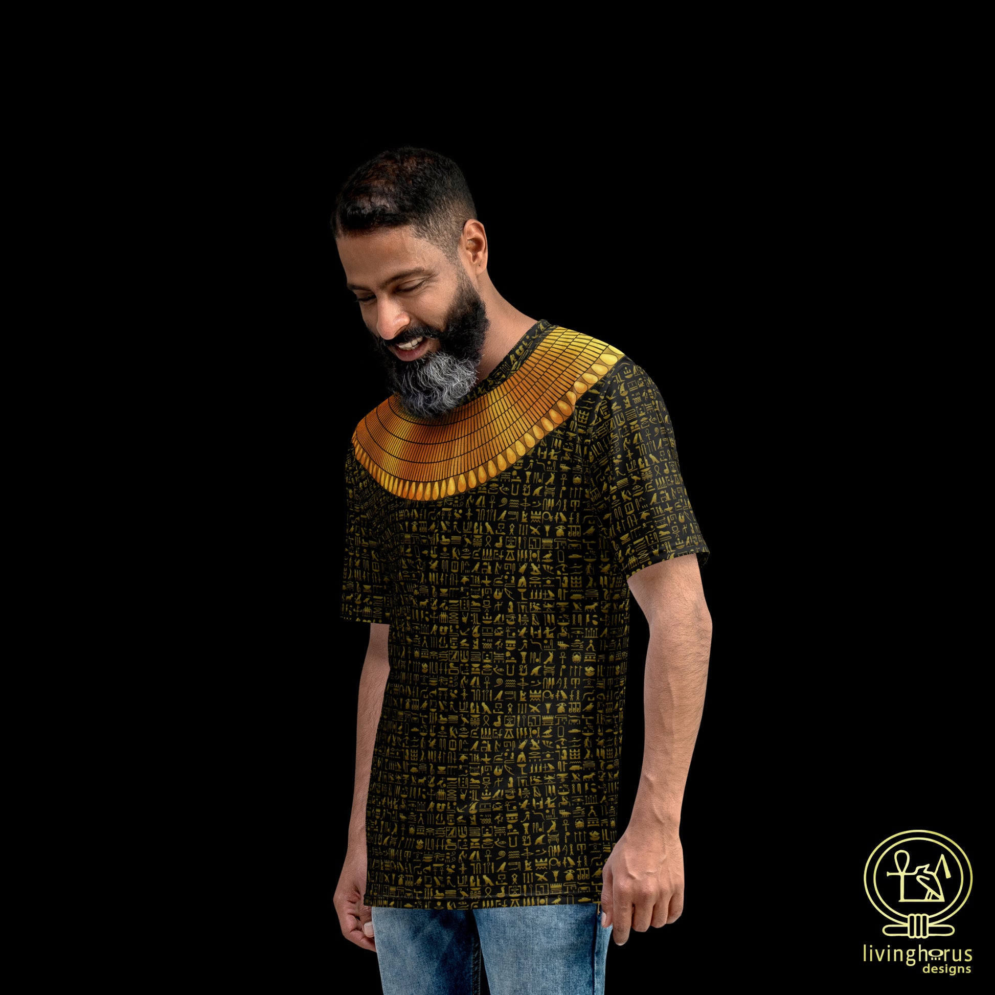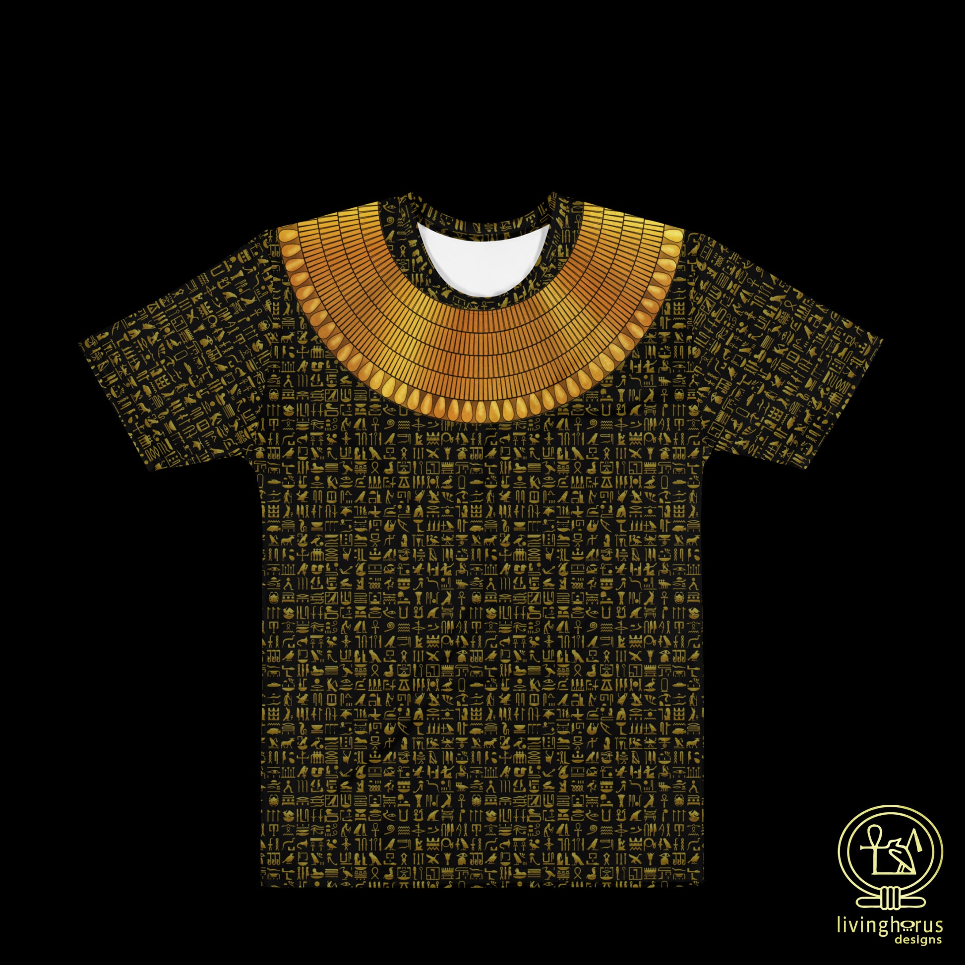 Living Horus Designs is dedicated to merging ancient art with modern fashion. Our Gold Usekh Collar T-Shirt is more than just a garment; it's a statement piece that connects you to a rich and storied past while keeping you stylishly in the present. Experience the fusion of history and contemporary design with this unique tee shirt, and let your clothing a wearable homage to the divine power of ancient Egypt.