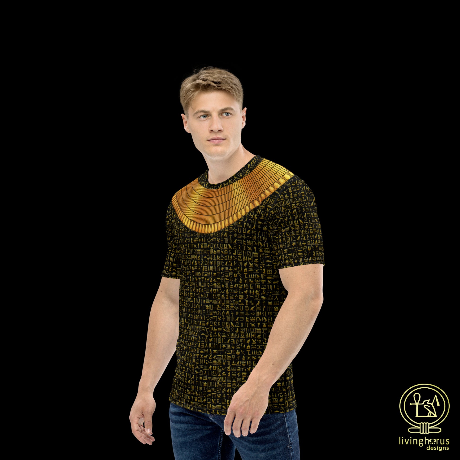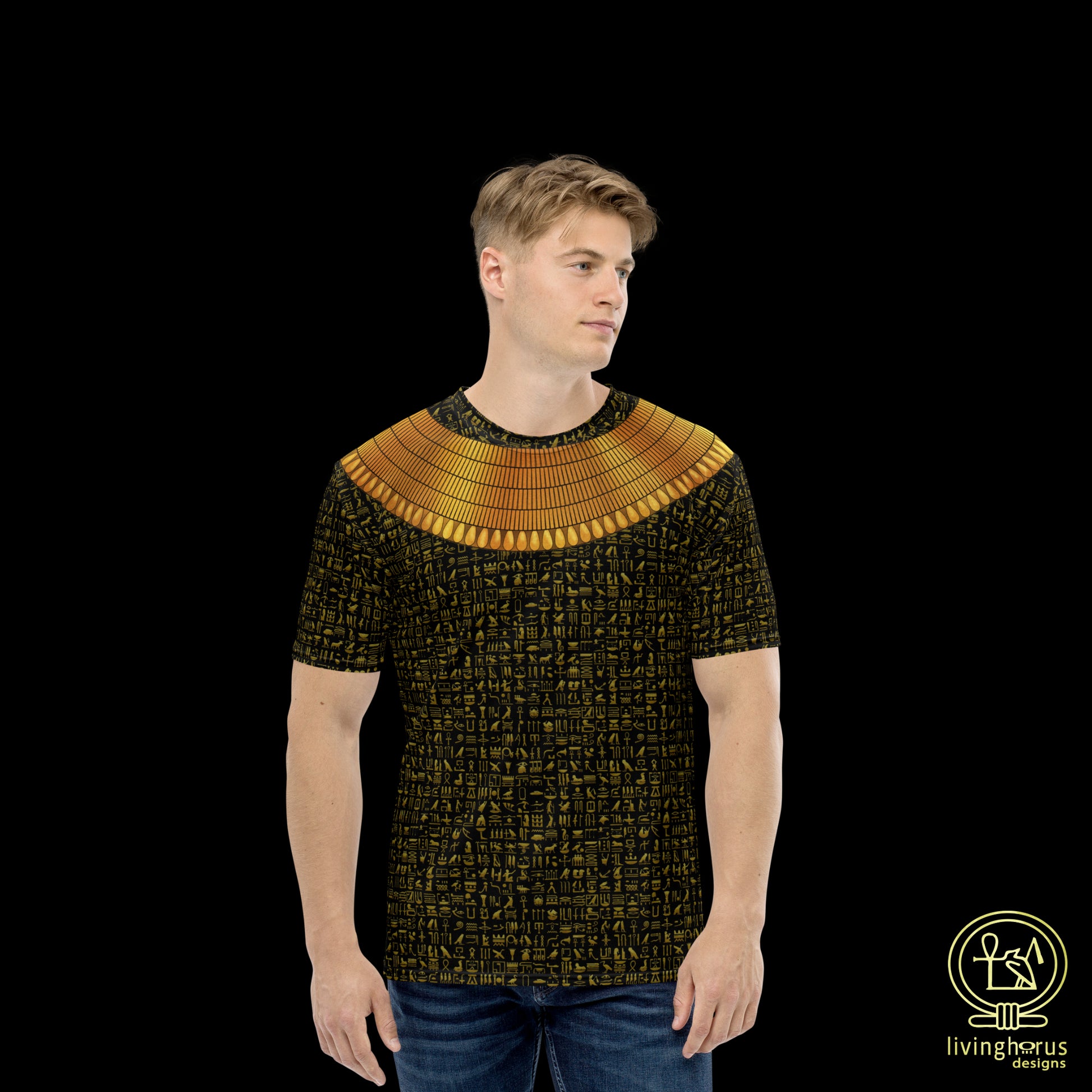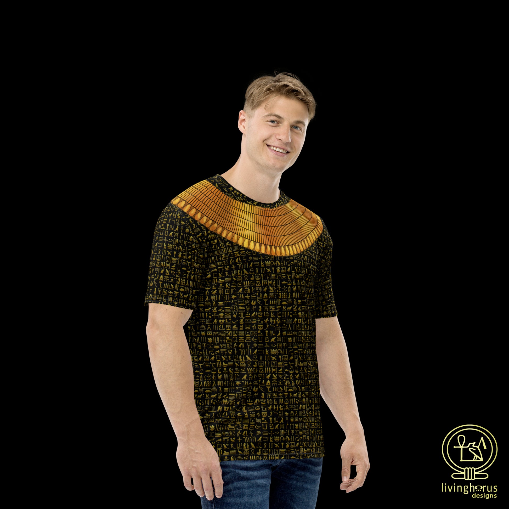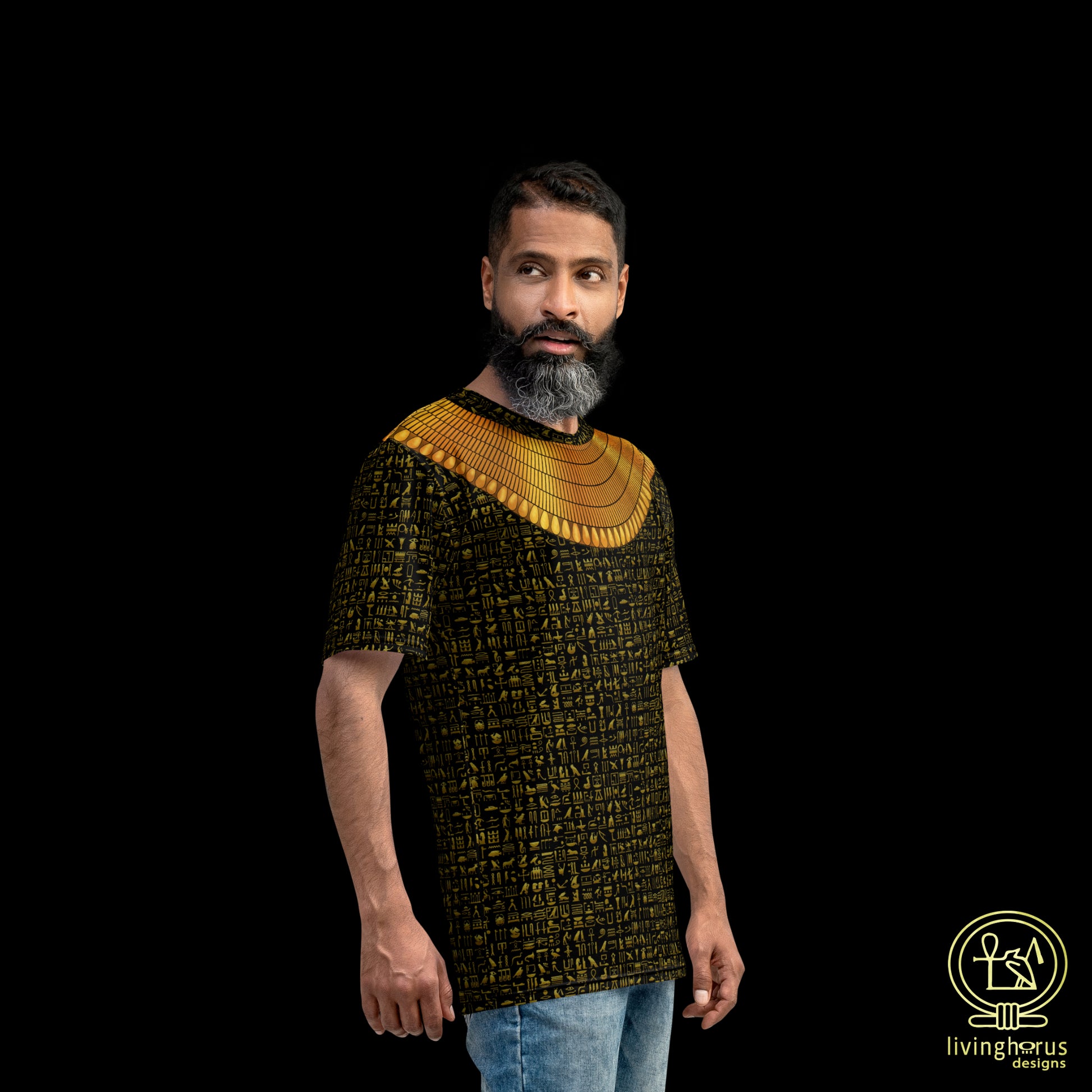 Living Horus Designs is dedicated to merging ancient art with modern fashion. Our Gold Usekh Collar T-Shirt is more than just a garment; it's a statement piece that connects you to a rich and storied past while keeping you stylishly in the present. Experience the fusion of history and contemporary design with this unique tee shirt, and let your clothing a wearable homage to the divine power of ancient Egypt.