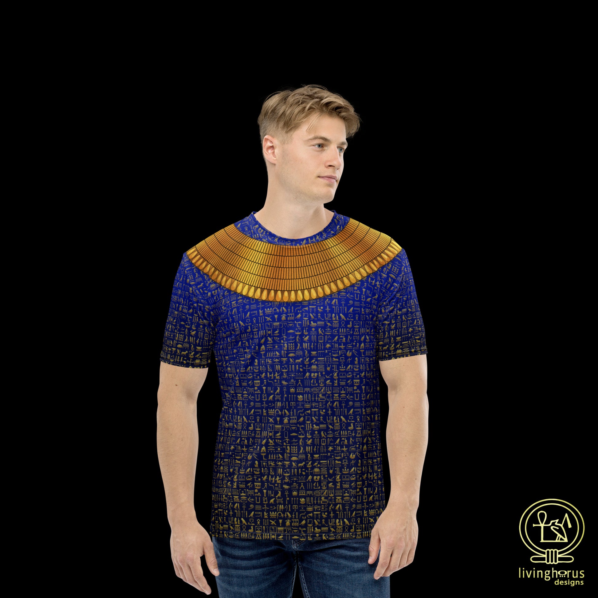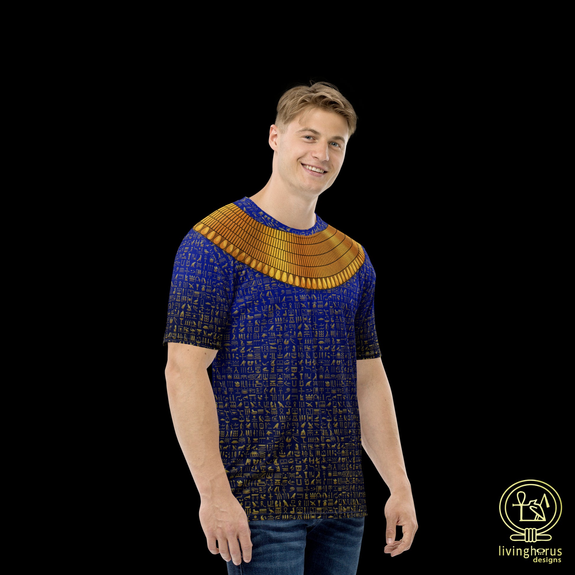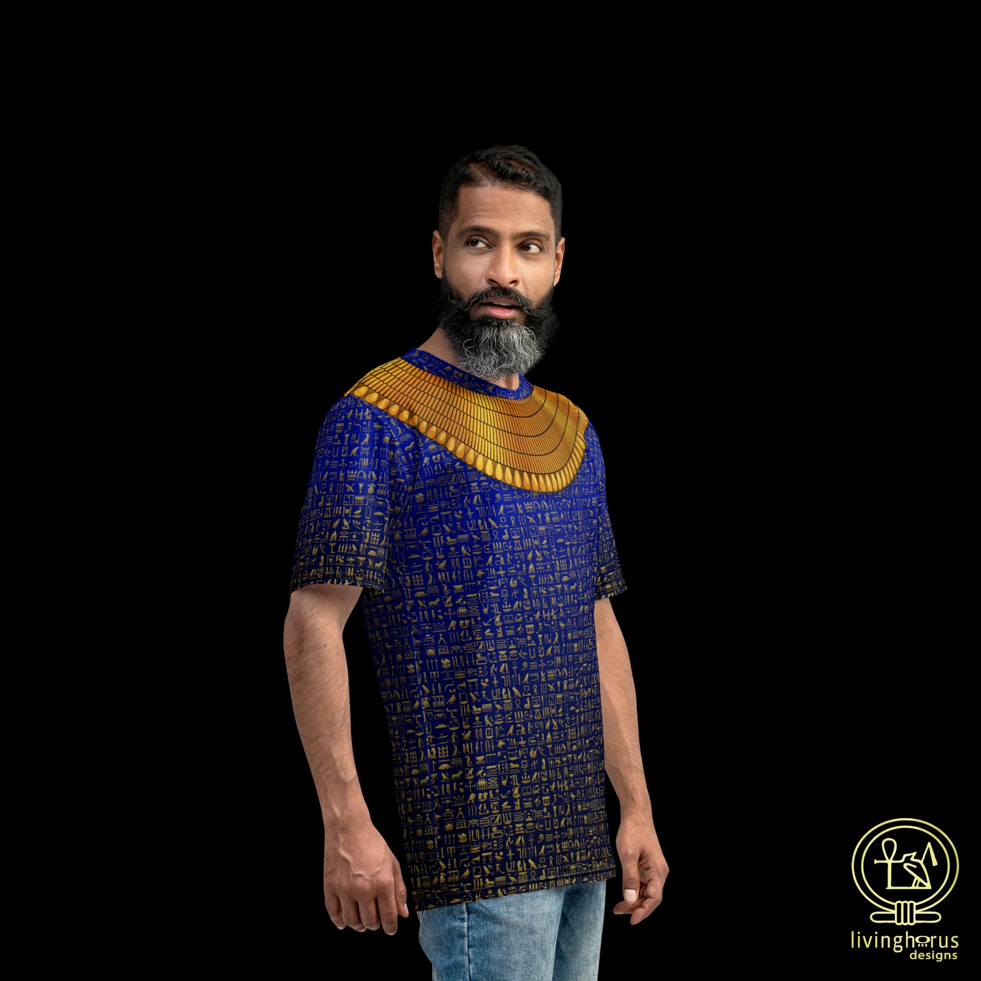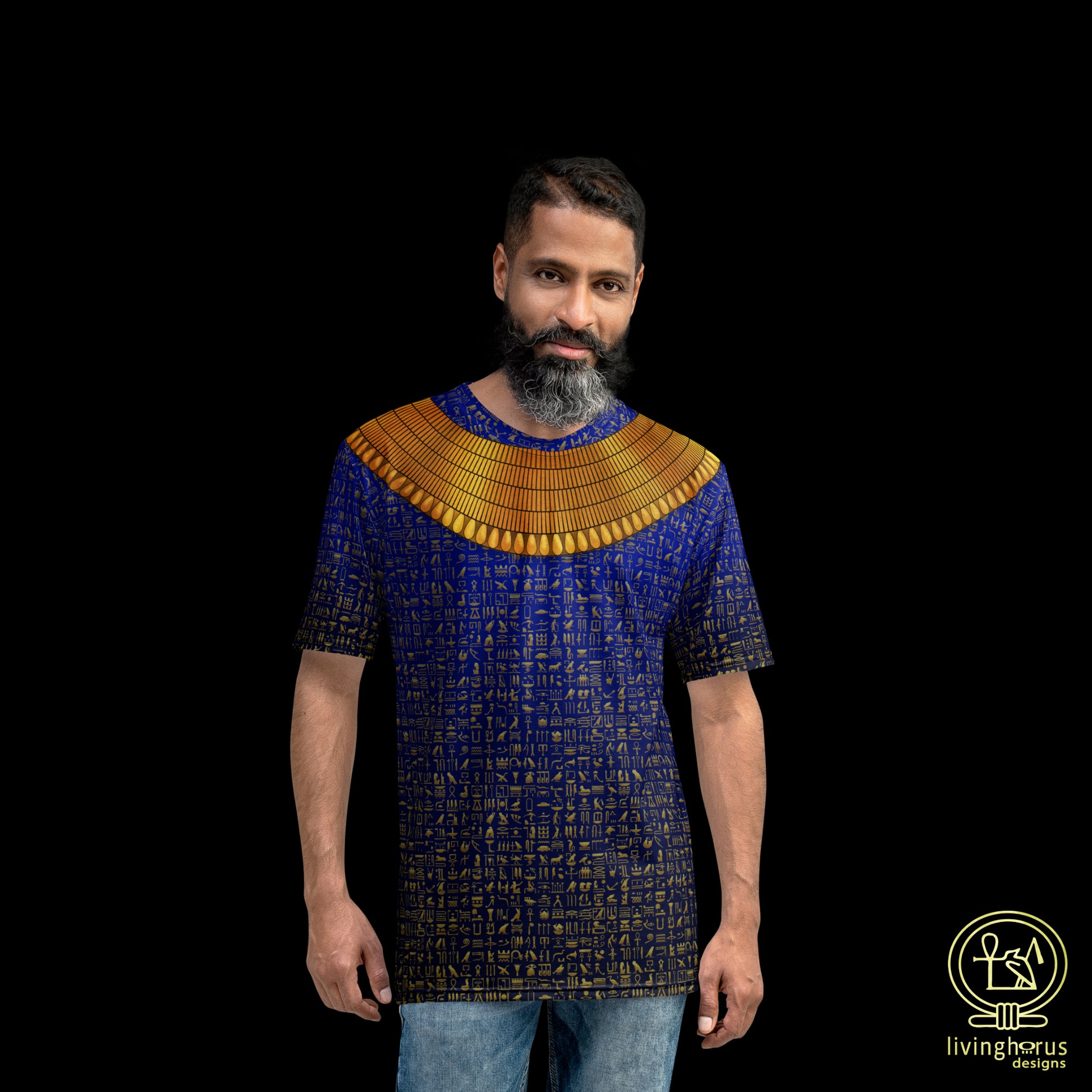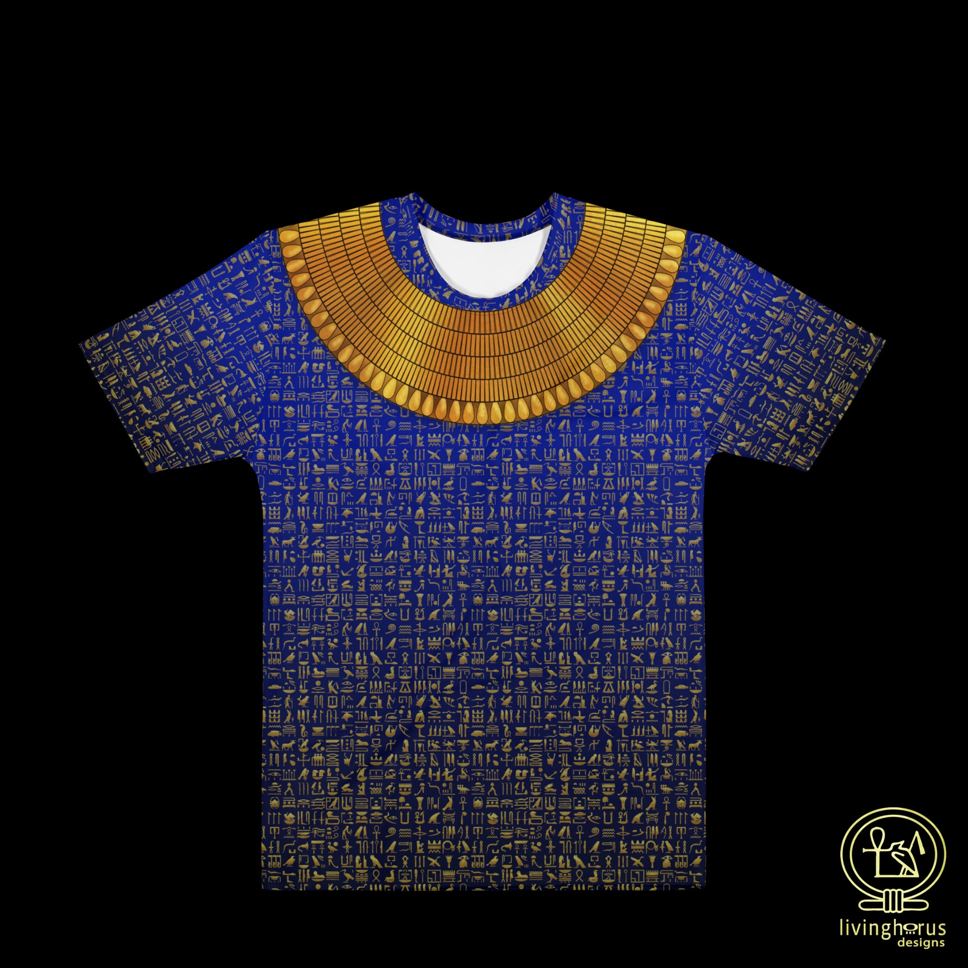 Living Horus Designs is dedicated to merging ancient art with modern fashion. Our Gold Usekh Collar T-Shirt is more than just a garment; it's a statement piece that connects you to a rich and storied past while keeping you stylishly in the present. Experience the fusion of history and contemporary design with this unique tee shirt, and let your clothing a wearable homage to the divine power of ancient Egypt.