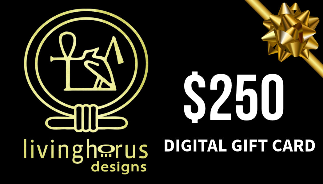 The Living Horus Designs electronic gift card is here! Living Horus Designs e-Gift Cards arrive via email to the email address you specify during checkout. Available in many denominations our gift recipient can then use their e-Gift Card to buy anything in our online shop at livinghorusdesigns.com.